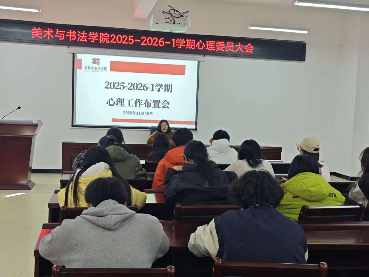 为进一步加强学院心理健康教育工作队伍建设,充分发挥班级心理委员的朋辈辅导作用,构建更为完善的心理健康防护网络。11月19日下午,美术与书法学院在求是楼会议室召开了2025-2026学年心理委员大会。学院心理辅导员黄玉昕及学院全体心理委员共同出席了本次会议。