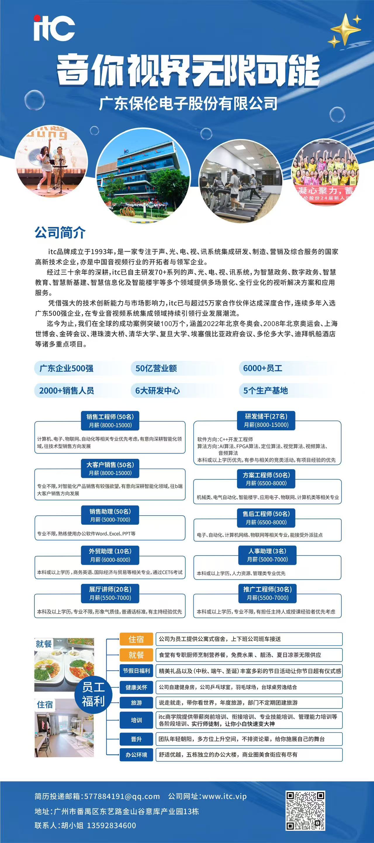 10月29日下午,美术与书法学院邀请广东保伦电子股份有限公司举办线上专场招聘会。作为行业内颇具影响力的企业,广东保伦电子股份公司此次带来了大客户销售、销售助理、展厅讲师、人事助理、推广工程师等多个核心岗位,吸引了2026届毕业生踊跃参与。