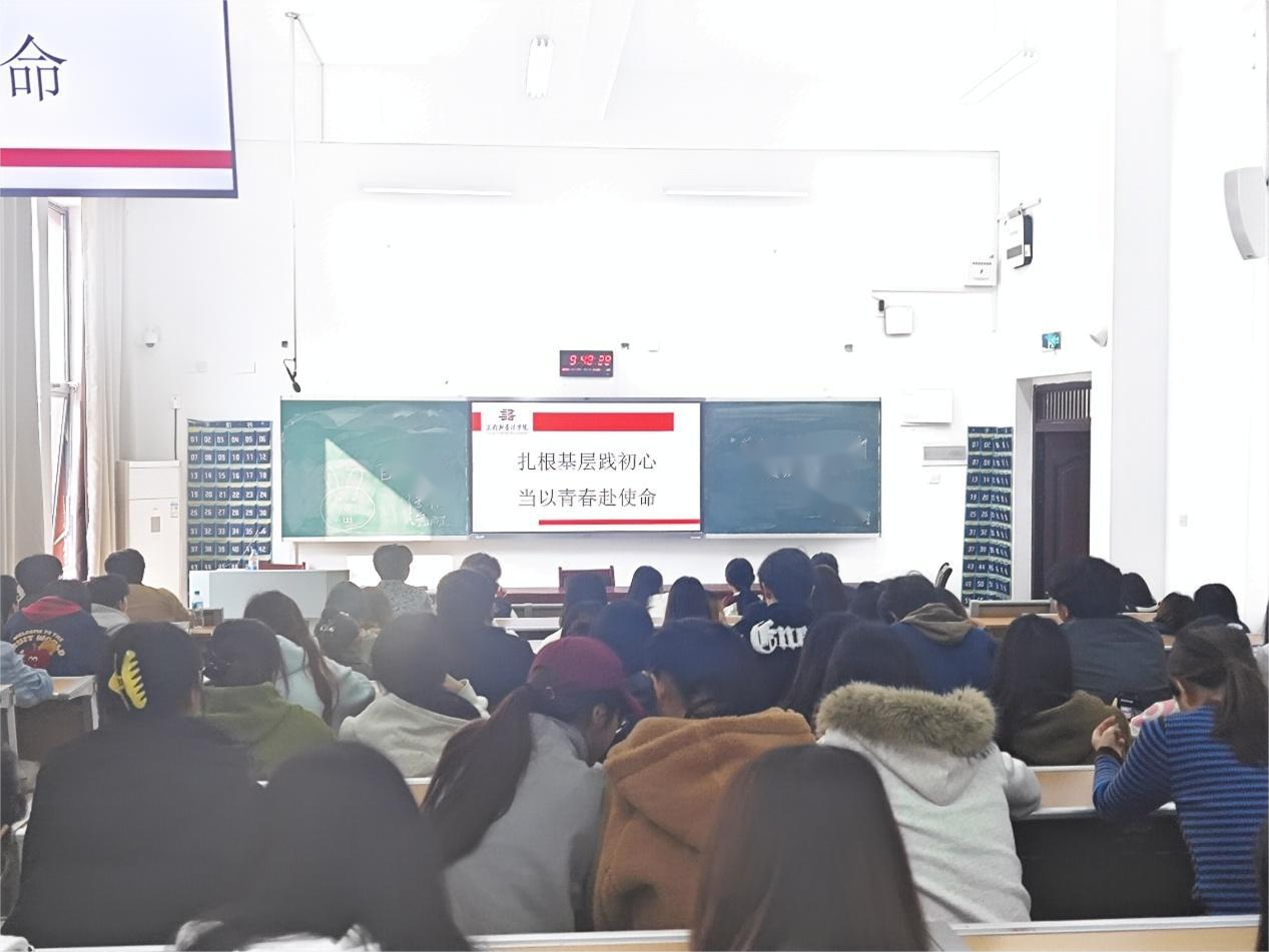 作为扎根基层两年的优秀校友,陈雨杰以自身服务经历为蓝本,分享了从校园走向江西省宜春市万载县岭东乡人民政府的基层工作故事。他讲述了初到基层时,面对简陋住宿、不便交通与方言沟通障碍的挑战,通过“大会记方言、入户练交流”的坚持,逐步融入当地生活的历程;详细介绍了自己在乡村振兴办负责政策推广、农户排查、医保催缴等工作,凭借专业所长设计乡镇统一店面招牌、制作宣传版面与预防校园欺凌手册的实践成果。他以“用一年不长的时间,做一件终身难忘的事情”为信念,生动诠释了青年学子在基层岗位上的责任与担当,鼓励学弟学妹们“把个人理想融入国家发展,基层是成长成才的广阔舞台”。互动环节中,同学们围绕基层就业政策、专业技能应用等问题踊跃提问,陈雨杰逐一耐心解答,现场氛围热烈。
