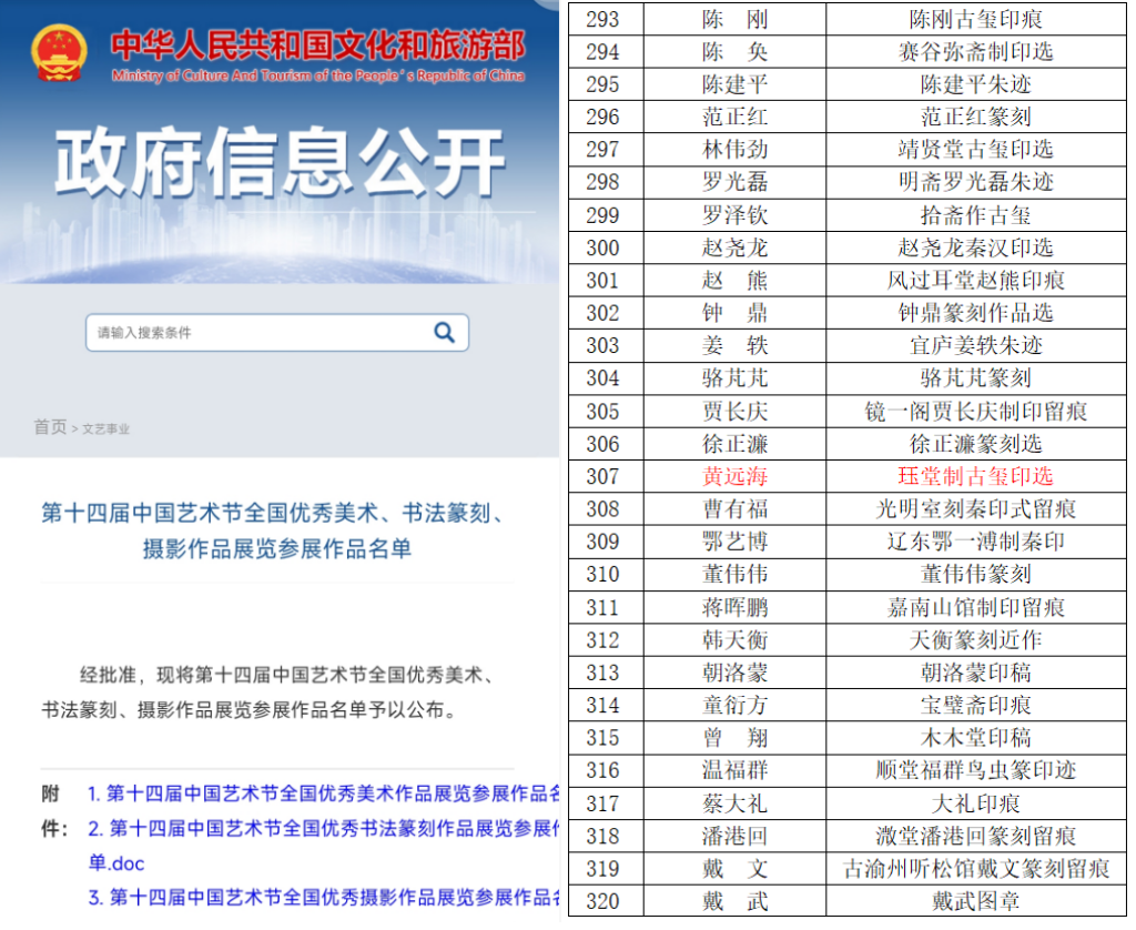 近日,第十四届中国艺术节全国书法篆刻作品展览评选结果揭晓,美术与书法学院黄远海教师篆刻作品《珏堂制古玺印选》荣耀入选。中国艺术节是由中华人民共和国文化和旅游部与地方政府共同主办,每三年一届,为全国规格最高、规模最大、影响力最广的综合性文化艺术盛会。本届展览通过全国征集、推荐、特邀等方式遴选汇集,最终选出书法作品267件,篆刻作品54件。