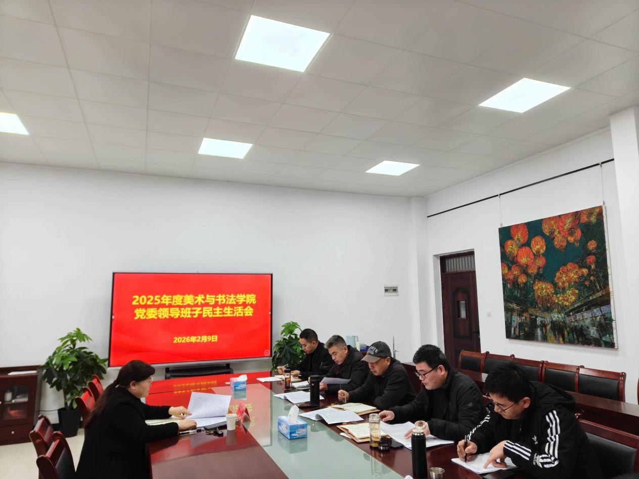 2月9日上午,美术与书法学院党委在博学楼114会议室召开2025年度领导班子民主生活会。会议由院党委书记俞燎宏主持,院党委委员出席会议,党员代表、党外人士代表列席,校党委委员、副校长余新卫到会指导。